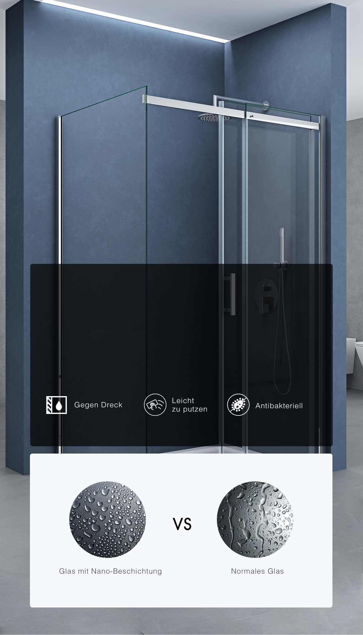 - Doporro® Exklusive Duschkabine mit Sicherheitsglas und NANO-Beschichtung 80x120 cm Eck-Dusche mit praktischer Schiebetür Ravenna18K