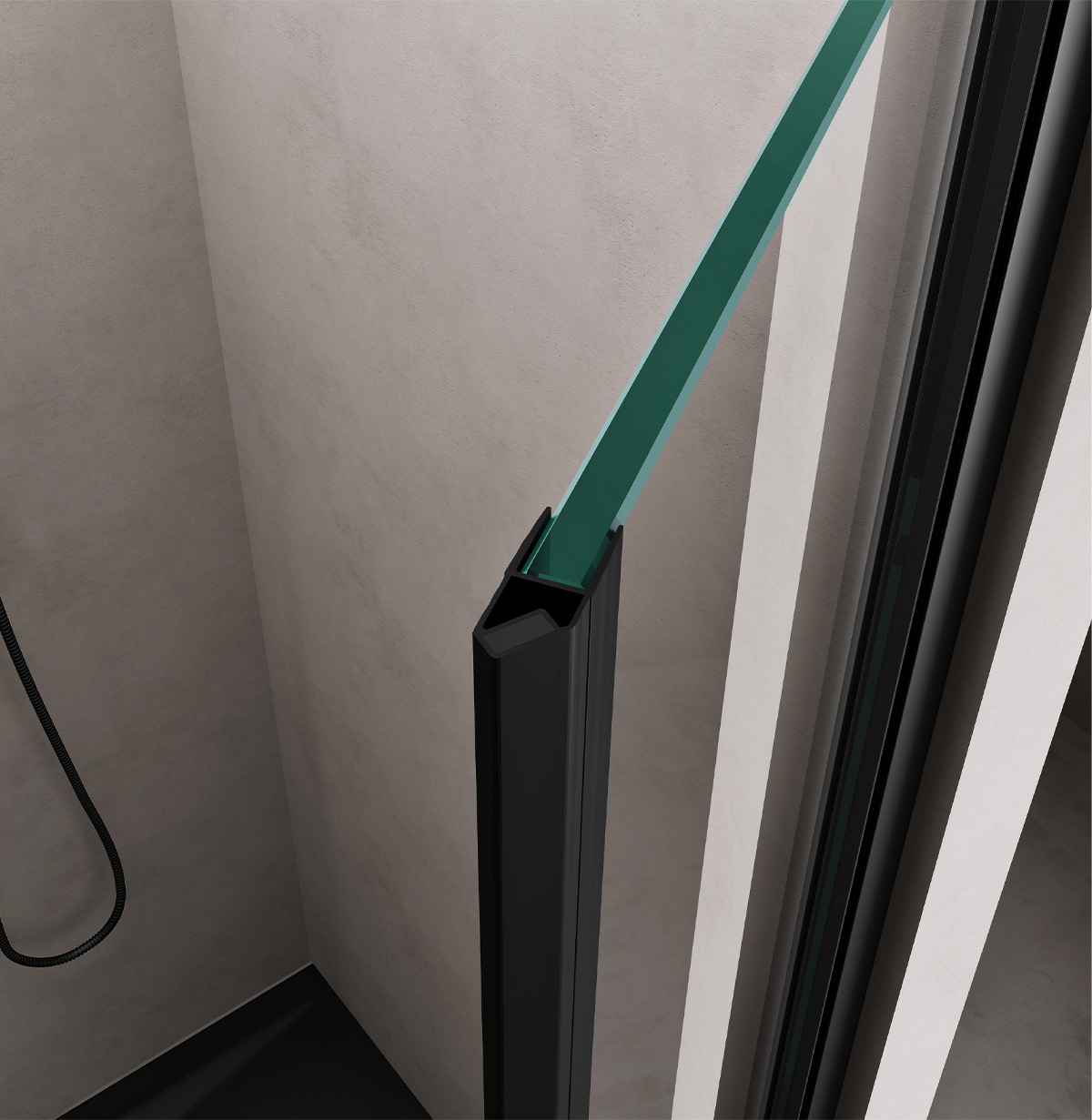 doporro® Nischentür Nischendrehtür Duschabtrennung 90x195cm Duschtür aus Klarglas mit Hebe- und Senkmechanismus Schwarz Teramo66K